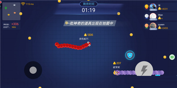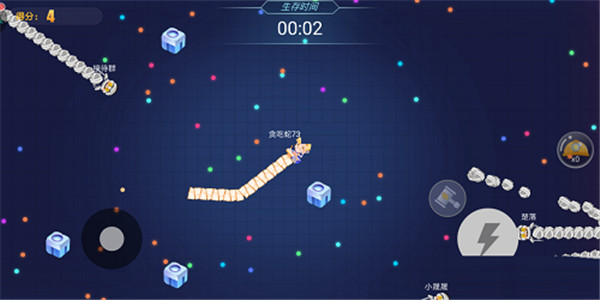 1、基本玩法 在游戏界面中,玩家的左手操作圈是用来进行移动和改变方位,右手边则是控制加速技能的释放和停止。加速技能的释放会消耗少量小蛇的长度,要注意控制技能的释放。
