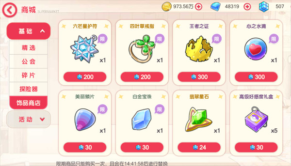 ②升星:需要翡翠星石,饰品抽卡和活动可获取。