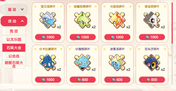 这里主要是先兑换羁绊跟图鉴,巨金怪、牙牙、圆陆鲨的图鉴都开了以后就可以不用了,这几个精灵用的人也不多,牙牙在石英可以。