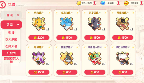 还有就是在上次更新中加入了一部分S碎片,如果有金币的买了,礼物的话也可以买金币的。