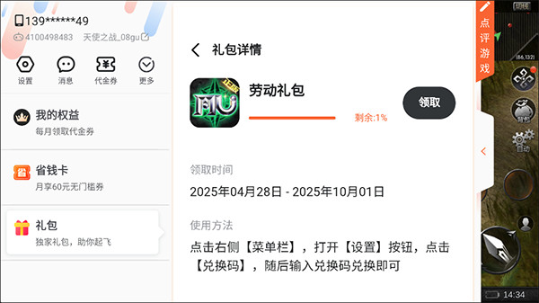 3、领取完后就可以返回游戏内点击设置,选中兑换码-输入领取就好了。