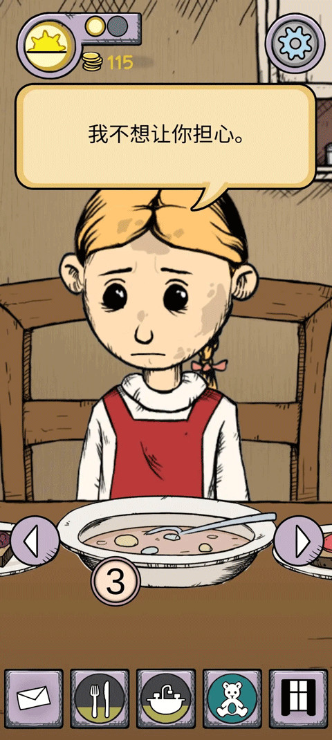 2、游戏模式是时间管理,难度不大,但引人入胜的是剧情,同时这种游戏模式也很好地模拟了一种生活情景。(如果可以我想每晚给你念故事入睡,因为梦里没有伤害。但是有时我不得不拒绝你,因为我要写信帮你找爸爸妈妈,我要缝补你被人欺负后破烂的衣服...
