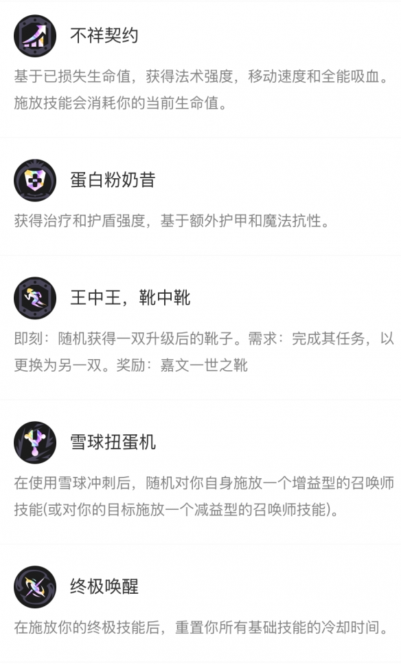 海克斯大乱斗符文非常的多,玩家们在游戏的过程中不知道符文的选择情况,下面小编整理了海克斯大乱斗的符文大全,有需要的话可以来这里看看符文内容哦!