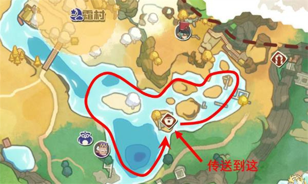 8、寒霜村下方:先传送到寒霜村下方炼金釜,然后湖上采集一圈,回岸恢复体力时采集岸边花。