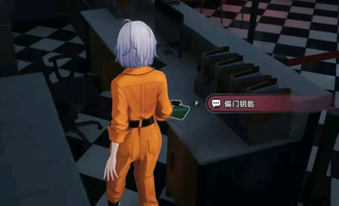 等管教走过一段时间(大约5~6s左右),出来到左手边的房间里,背后吧台拿钥匙从正门出去