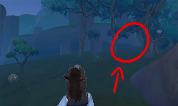 2、然后会遇到两颗树,然后从两颗树的中间走过去,会遇到两个柱子,继续往前走然后攀爬,爬上去后继续向前走。