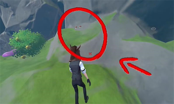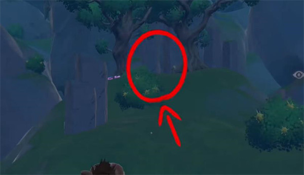 3、之后又会遇到两颗树,从两颗树的中间过去,期间会遇到一个史莱姆,绕过史莱姆继续前进期间不要触碰任何物品,爬到对面后右上方有一个宝箱,这个宝箱位置比较高,尽量靠近些再攀爬上去。