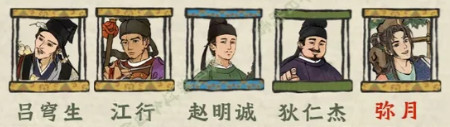 吕穹生、江行、赵明诚、狄仁杰、弥月