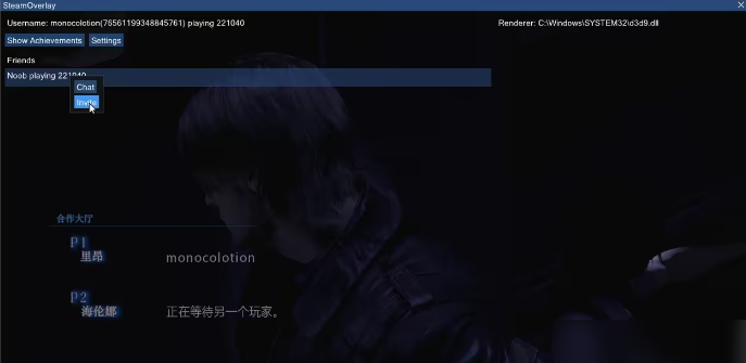 主机操作:选择章节 > 运行同伴加入 > 开始游戏 > 等待客机加入或者使用邀请好友进入。