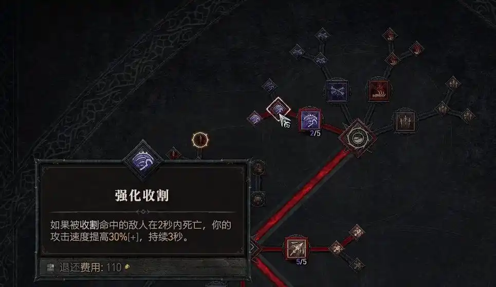分支技能点出“强化收割”,增加攻速。