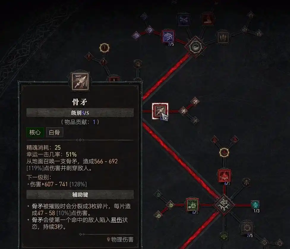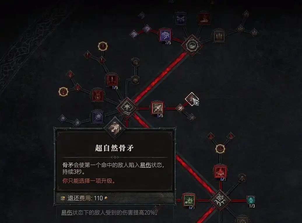 分支技能点出“超自然骨矛”,命中对手时造成易伤效果。