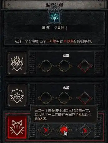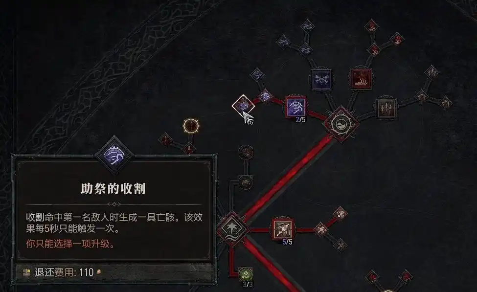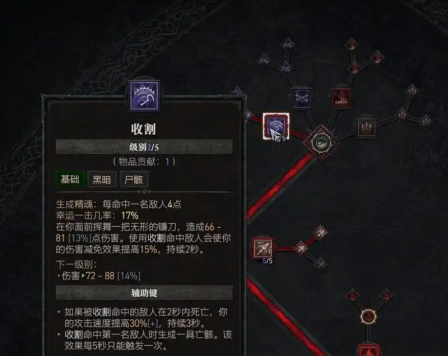分支技能点出“助祭的收割”,收割对手时生成新的骸骨。