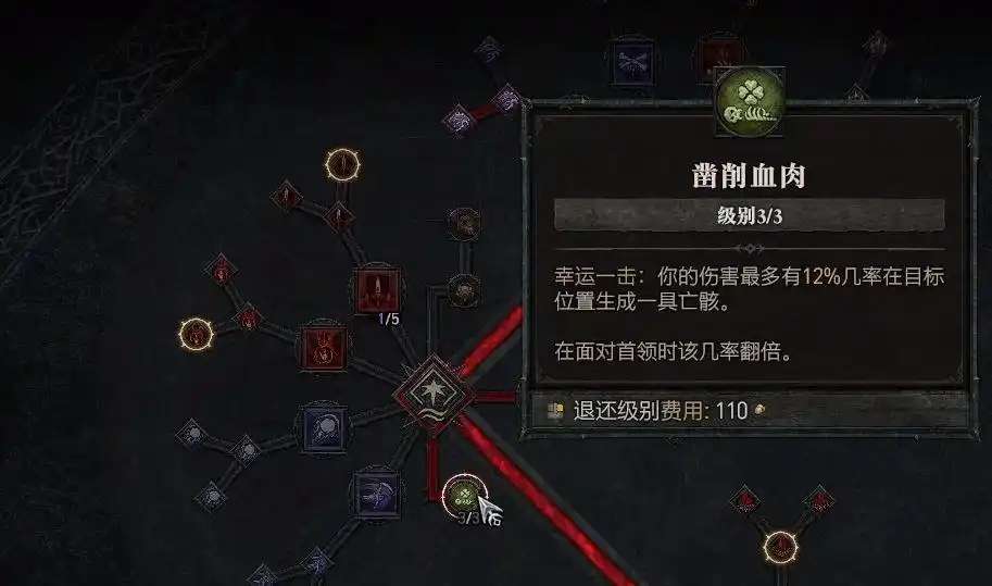 2、凿削血肉(加3点),有幸运一击效果,有概率在目标位置生成新的骸骨。