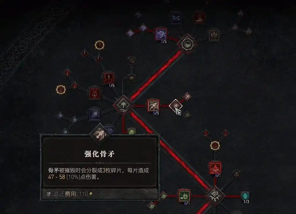 分支技能点出“强化骨矛”,会分裂成3枚碎片造成伤害。