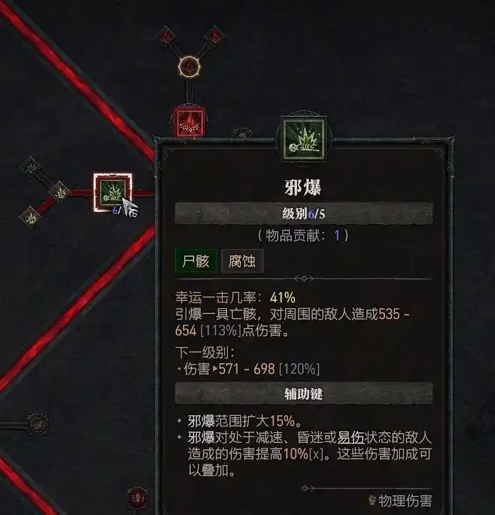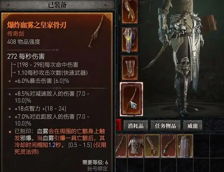 带有血雾技能触发邪爆效果的装备,非常关键。