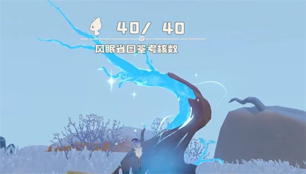 2. 跟着地图上的蓝色标记走,在一个冰柱后面能看到发光的植物,靠近采集就行