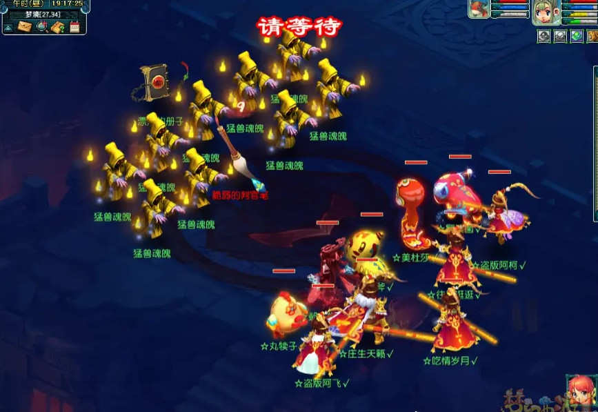 第一阶段怪物血量较少,建议优先击杀判官笔,将魂魄转生,快速削减怪物数量。