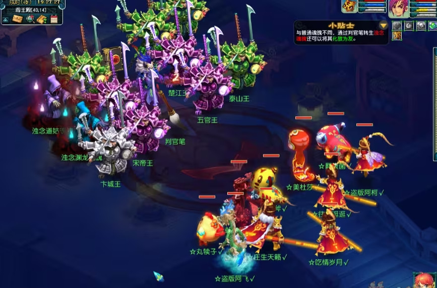 击杀攻略:优先攻击血量较低的土匪魂魄,再集火判官笔,让判官笔转生血量较高的猛兽魂魄。