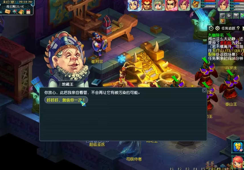 清除孤魂野鬼后,与老和尚(梦境25,54)对话,前往阎罗殿。